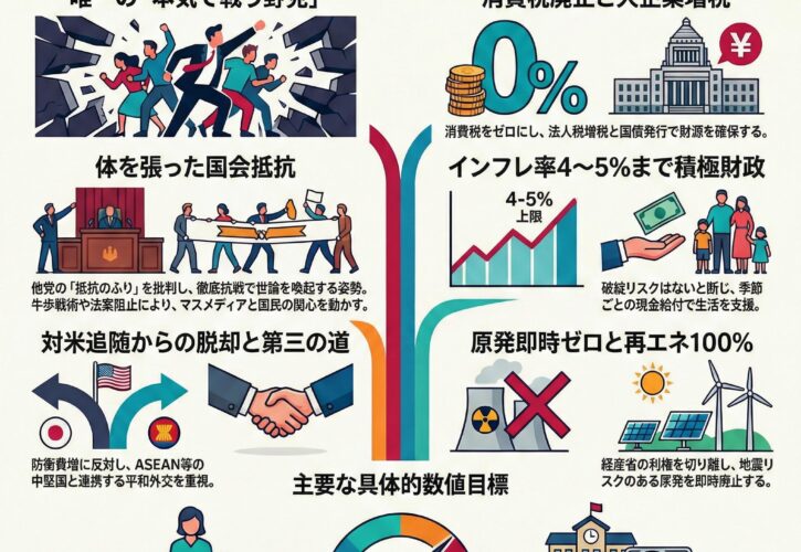 真の野党の役割は、牛歩戦術や徹底した抵抗によって国会を止め、マスメディアを動かし、世論を喚起することにあると述べた。入管法改正案を廃案に追い込んだ過去の事例を挙げ、議場でのパフォーマンスではなく、現実に法案を止める行動こそが評価されるべきである。