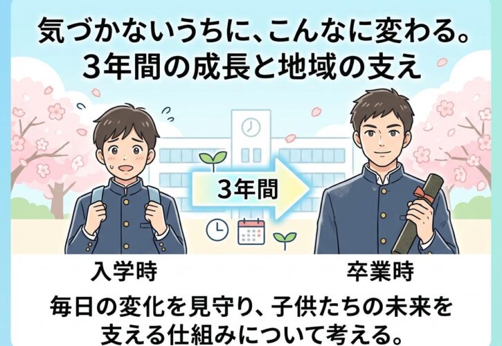 それは、子どもたちの成長の時間は、保護者だけでなく、先生方、地域の大人たち、そして行政の仕組みに支えられているということです。